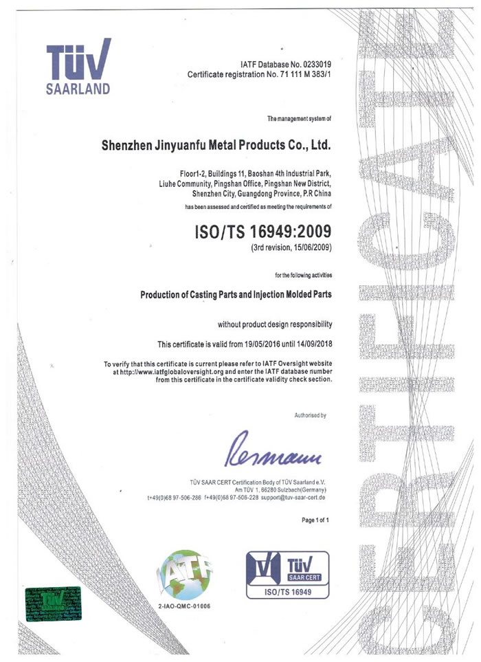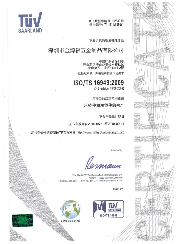 深圳市金源福五金制品有限公司成立于2003年。公司擁有8000多平方米生產(chǎn)廠地、開發(fā)與管理精英人才、技術(shù)專業(yè)、設(shè)備精良、交通便利、服務(wù)周全、具體設(shè)計、開發(fā)、制模、出樣、生產(chǎn)到成品出貨一體化模式生產(chǎn)廠家。已通過ISO9001:2008ISO1440/TS16949:2009國際質(zhì)量體系認證。專業(yè)生產(chǎn)鋅合金壓鑄、鋁合金壓鑄產(chǎn)品、汽車配件、汽車后視鏡支架、車載導(dǎo)航散熱器、LED散熱器、LED燈罩、數(shù)碼電子五金結(jié)構(gòu)件、家具五金裝飾件、標牌(LOGO)等五金壓鑄產(chǎn)品。